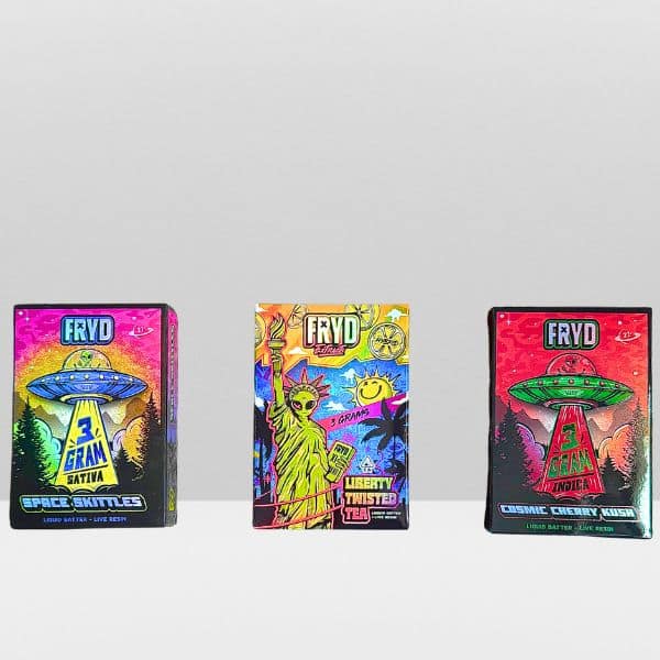 One 3000mg Live Resin and Liquid Batter Disposable Vape and Five Live Resin Infused Gummies by Fryd Extracts