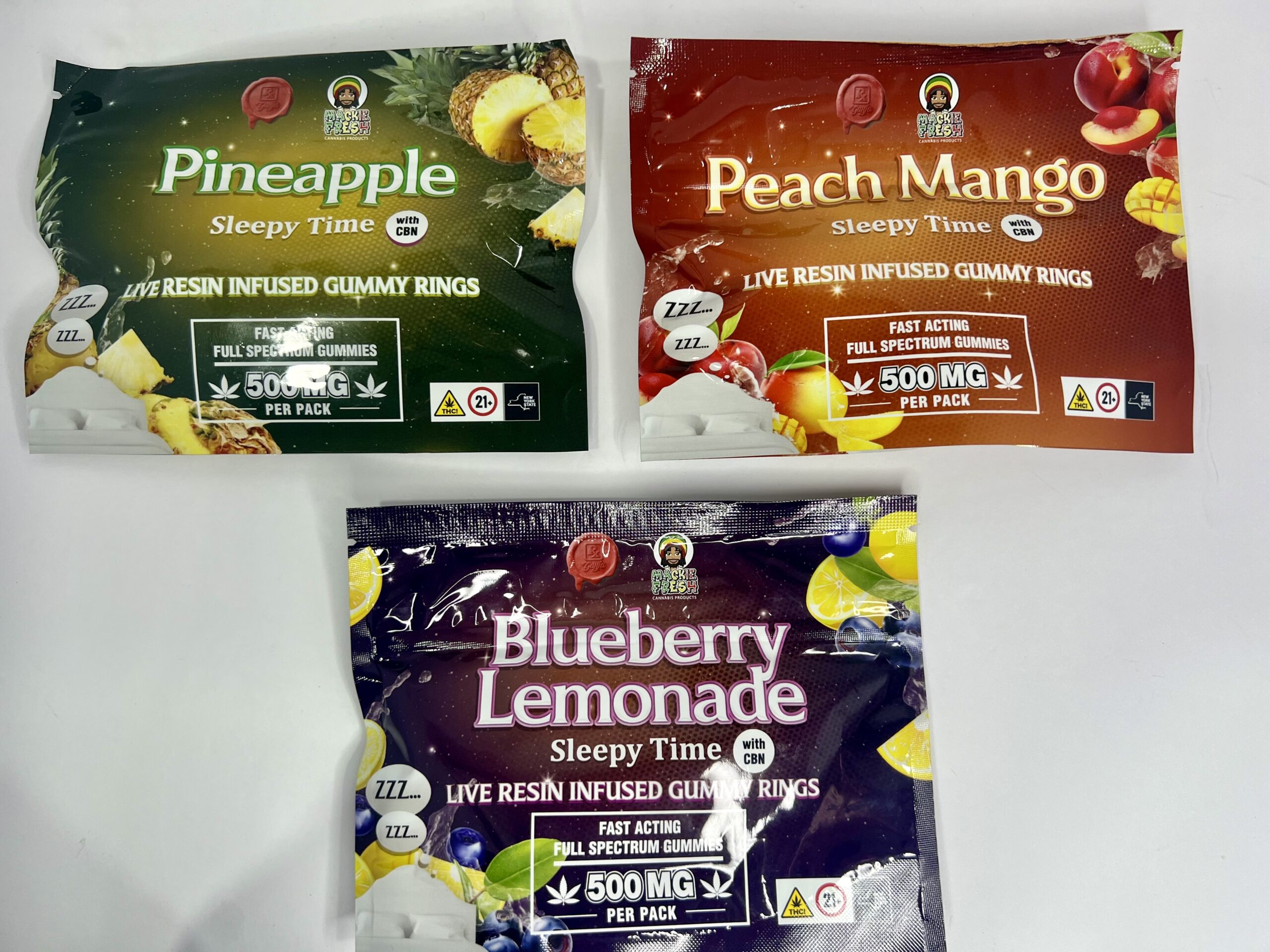 Mackie Fresh x Rx Ganja Sleepytime Gummies are the ultimate nighttime treat for those seeking a restful and rejuvenating sleep. Infused with both live resin THC and CBN, these gummies combine the potent effects of cannabinoids for a balanced, calming experience. Each pack contains 8 gummies, with a total of 500mg of THC and CBN. At 62.5mg per gummy, they offer a powerful dose perfect for those looking to unwind after a long day. The flavors may change based on availability, but the relaxing effects are always consistent. Perfect for anyone seeking a peaceful, euphoric sleep, these gummies are your go-to for a peaceful night’s rest.